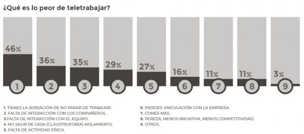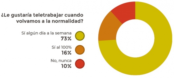 El 73% de los encuestados prefieren volver a su entorno de trabajo, aunque afirman que les gustaría teletrabajar “algún día a la semana” y solo el 10% restante responde que nunca.