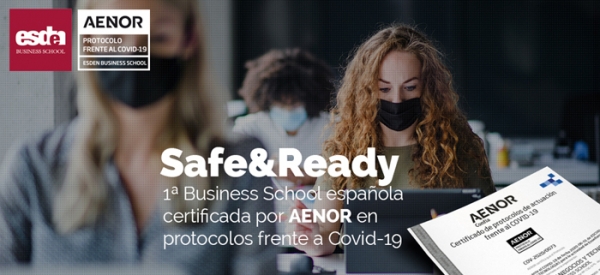Esden Business School se ha convertido en la primera Escuela de Negocios en España en conseguir el certificado Aenor frente a la COVID-19. Este sello se aplica en las instalaciones docentes y oficinas de su sede principal en Madrid.