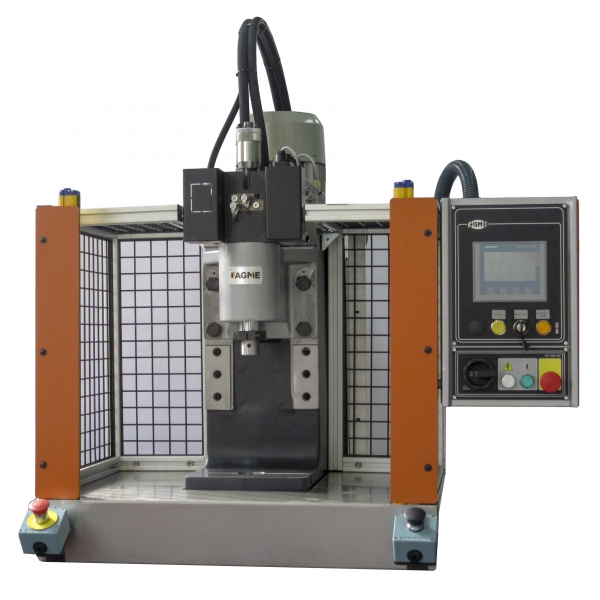 AGME Automated Assembly Solutions dispone de dos modelos de prensas hidráulicas de sobremesa: PHM-5 y PHM-10 para ejercer fuerzas de 5 y 10 toneladas respectivamente. Estos modelos también pueden servirse con topes graduables TG para ajustar con precisión el avance de la carrera. Incorporan además resguardos y barreras fotoeléctricas para garantizar la seguridad del operario.