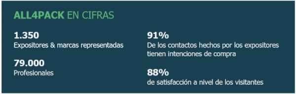 El salón ALL4PACK Emballage Paris, que reunirá en noviembre una oferta completa (embalaje, tratamiento, impresión y logística), tiene la ambición de que esta nueva edición se convierta en un evento de vanguardia e ineludible, poniendo de relieve el poder de innovación de todo el ecosistema del embalaje y la intralogística. Con el fin de presentar más específicamente las numerosas innovaciones y soluciones concretas para el embalaje de hoy y de mañana, se han diseñado áreas específicas para satisfacer las expectativas de todos los visitantes.