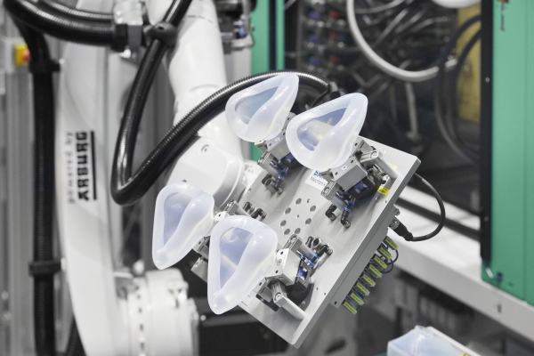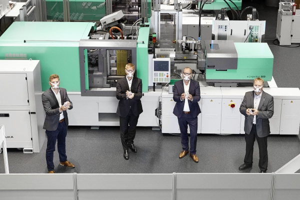 Después de que Arburg comenzase a fabricar gafas protectoras en máquinas de moldeo por inyección Allrounder en su sede en Lossburg (Alemania) a mediados de abril, la compañía de ingeniería mecánica ha lanzado un proyecto adicional para combatir la propagación del coronavirus: desde el 11 de mayo, se moldean por inyección mascarillas faciales a partir de LSR (caucho de silicona líquida) y PP (polipropileno). Se espera que alrededor de 3.500 de estas mascarillas multifuncionales de alta tecnología se fabriquen diariamente en condiciones de producción en serie. El producto se utilizará inicialmente para proteger a los propios empleados de la compañía en todo el mundo y posteriormente se distribuirá lo más rápidamente posible a través del distrito de Freudenstadt a hospitales y centros sanitarios.