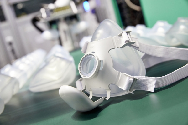 Las mascarillas flexibles hacen mucho más que actuar como un simple protector bucal: el producto multifuncional consiste en una mascarilla de LSR suave que se coloca sobre la nariz y la boca y un protector de PP firme con ojales para incorporar bandas elásticas. En medio, hay una conexión estandarizada con un agujero (DIN EN ISO 5356-1: 2004).