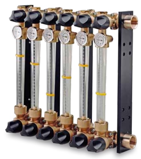 Wittmann presenta los caudalímetros de latón para agua Serie 200/230. Los bloques superior e inferior, así como los distribuidores, están hechos de latón para altas temperaturas y presiones.
