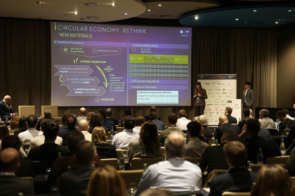 Otro OEM participante fue SEAT, encargado de abrir el segundo día del evento. Angela Herranz, Sustainable Polymers, Coating & Body Int. Analyst de SEAT, explicó la estrategia circular de materiales de la compañía, con la reciclabilidad y la incorporación de contenido reciclado como pilares en cuanto a tecnología de materiales. Entre otras iniciativas para avanzar en sostenibilidad, destaca un proyecto de diseño para la circularidad de un apoyabrazos basado en un concepto monomaterial, presentado por Gianmarco Sabellico, PhD Student en SEAT.