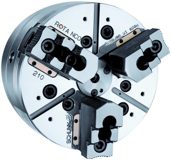 Rota NCO es un chuck para torno automático de 3 garras, con gran recorrido de garras y pasos de fluidos integrados. Este producto de Schunk ofrece máximas fuerzas de sujeción, incluso con carreras de garras más grandes.