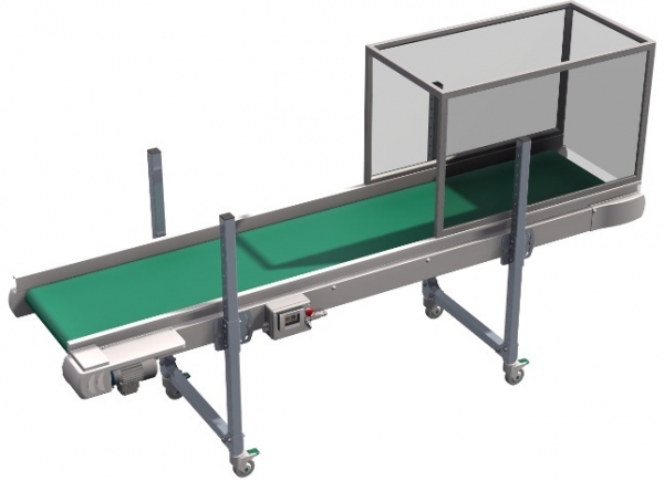 El Modelo PNL es una cinta transportadora plana diseñada especialmente para la recepción de piezas desde un robot o manipulador. Incorpora unos soportes ajustables que permiten regular la altura de la banda de 460 a 1.260 mm desde la superficie. También puede ajustarse con un ángulo de 0 a 25º y llevar instalados faldones laterales para evitar que el producto caiga durante el recorrido sobre la cinta. Se suministra de forma opcional con protección de seguridad para robot “CPR”.