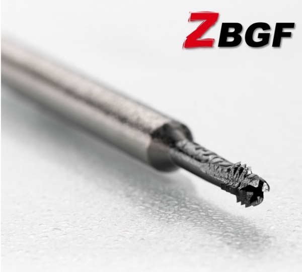 Las herramientas ZBGF son fresas de roscado de metal duro que fresan circularmente el agujero central antes de que los dientes de fresado de roscas produzcan la rosca requerida. Están disponibles con recubrimiento VS y refrigerante pasante como estándar.