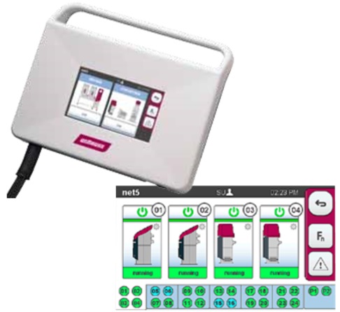 Las unidades conectadas se identifican automáticamente. Estas unidades se muestran en una pantalla táctil de 4,7’’, permitiendo un fácil funcionamiento para el operario y la visualización de los parámetros de proceso.