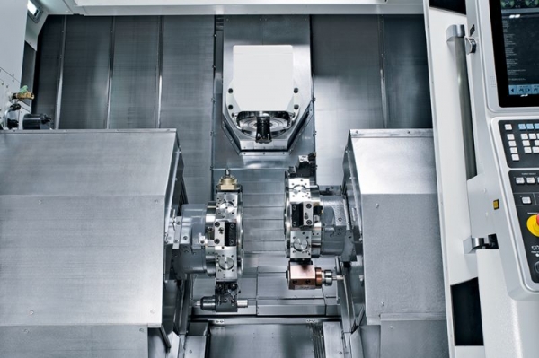 Dentro de los multiejes, destacan los “Multi-tarea”, centros de trabajo con 1 cabezal de fresar/tornear en la parte superior, de hasta 5 ejes CNC, con su almacén/cargador de herramientas de hasta 120 posiciones, y una o dos torretas de 12 posiciones motorizadas y 24 fijas con eje “Y”.