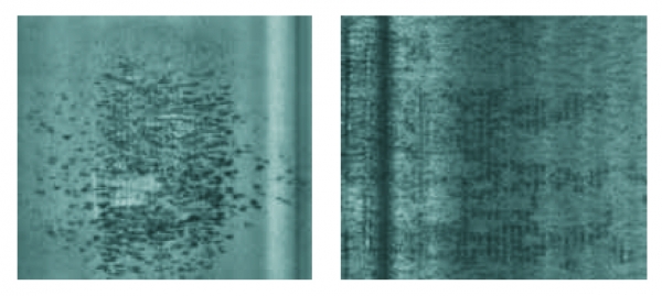 La calidad superficial de la chapa laminada es primordial para los usuarios finales, ya que tiene un impacto significativo en el resultado de su operación. Defectos superficiales simples como impresiones (Figura 5) o latigazos (Figura 6) crean problemas evidentes en la operación final. Problemático es el hecho que muchas veces estos defectos no se vuelven “visibles” hasta que no se ha completado la operación. Otros defectos superficiales más complejos, como oxidaciones (Figura 7), pueden causar problemas incluso mayores. Estas superficies pueden tener un aspecto apropiado en el producto terminado, pero pueden sufrir una rápida corrosión una vez que el producto está en el mercado.