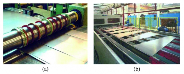 Una de las actividades de los centros de servicio del acero se enmarca en el proceso de corte o troquelado de chapa laminada homogénea. En las líneas de corte longitudinales se obtienen bobinas estrechas partiendo de bobinas anchas suministradas por la siderurgia y en las líneas de corte transversal se obtienen trapecios y paralelepípedos (Figura 2). El mercado exige que se procesen y suministren los formatos o bobinas requeridas con la máxima calidad.