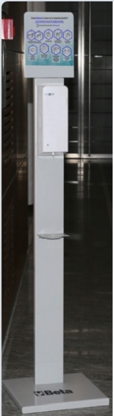 Beta presenta el dispensador automático para gel desinfectante 7121 y el soporte 7120.