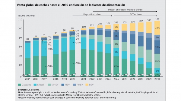 Mientras que los vehículos convencionales queman combustible en un motor de combustión interna, los vehículos eléctricos que funcionan con baterías no tienen motor de combustión. En cambio, utilizan la energía almacenada en baterías para alimentar uno o más motores eléctricos. Los vehículos eléctricos son una tecnología clave para reducir la contaminación del aire en áreas densamente pobladas y una opción prometedora para contribuir a los objetivos de diversificación energética y reducción de emisiones de gases de efecto invernadero. Desde el punto de vista productivo, se estima que mientras que las transmisiones convencionales tienen hasta 2.000 piezas, las transmisiones eléctricas pueden tener menos de 20. Este cambio es una oportunidad que se perderá si los vehículos eléctricos o sus componentes son importados o fabricados por proveedores de bajo costo. Por lo tanto es importante estar al día de los cambios en los sistemas que componen un automóvil con su transformación en eléctricos para adecuar las inversiones y desarrollos. Cambios como frenos regenerativos de energía, aligeramiento de estructuras, sistemas de transmisión, aumento de la inteligencia en los automóviles, baterías, etc. Así mismo se eliminan elementos que hasta la fecha eran los principales y críticos en la fabricación de un automóvil como los cigüeñales, árboles de lavas, cajas de transmisión, etc. Por ello, sin duda, se plantean como un nuevo mercado para las empresas de producción.