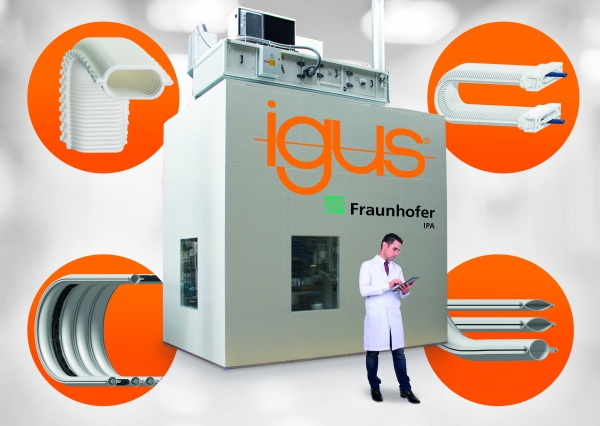 En la fabricación de semiconductores, los componentes como las cadenas portacables y los cables deben cumplir con los más altos estándares en cuanto a la liberación de partículas. Con el fin de poder desarrollar nuevos plásticos para aplicaciones en movimiento que sean adecuados para su uso en salas blancas, el Instituto Fraunhofer IPA, como socio de desarrollo y certificación en nombre de igus, ha diseñado y construido un laboratorio para salas blancas a medida con un sistema de salas blancas Clase ISO 1 en Colonia. Con el nuevo laboratorio, las pruebas de clientes y el desarrollo de nuevos productos por parte del especialista en plásticos técnicos se pueden llevar a cabo con antelación bajo condiciones reales en un corto período de tiempo.