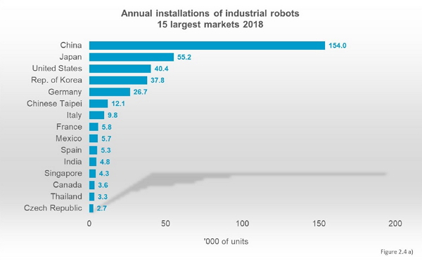 La Federación Internacional de Robótica (IFR) ha publicado recientemente el informe World Robotics Industrial Robots 2019, del cual se extrae la evolución del mercado global de robots industriales, así como la situación del mercado español en 2018. España mantiene el cuarto puesto en el mercado europeo de la robótica industrial (tras Alemania, Italia y Francia) y recupera la décima posición en el ranking mundial. Los datos del mercado español provienen del estudio anual que realizan AER e Interempresas de forma conjunta en colaboración con los fabricantes y distribuidores con actividad en España.
