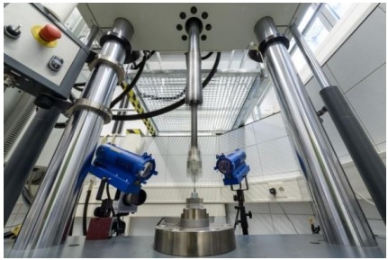 Con el nuevo dispositivo, el equipo científico de Fraunhofer LBF podrá investigar las propiedades plásticas incluso a temperaturas inferiores a la temperatura ambiente. Además, miden la deformación ópticamente con DIC/GSC (Correlación de Imagen Digital / Correlación de Escala de Grises) y, de esta manera, determinan un campo de deformación 2D en la muestra, de la cual se derivan las deformaciones longitudinales y transversales. El equipo de investigación genera las bajas temperaturas con aire comprimido refrigerado mediante nitrógeno líquido, con la muestra en el flujo de este aire. Una cámara térmica monitoriza la temperatura en un área grande, y el equipo comienza la medición tan pronto como se alcanza la temperatura deseada.