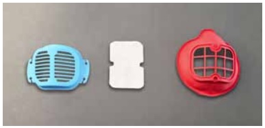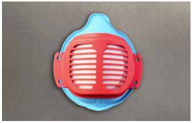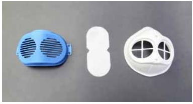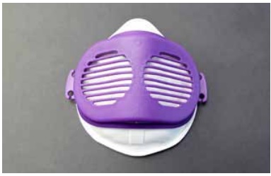 La máscara creada en cooperación con AKO consiste en una base con una pieza superior, sobre la cual se sujetan bandas elásticas ajustables de forma flexible.