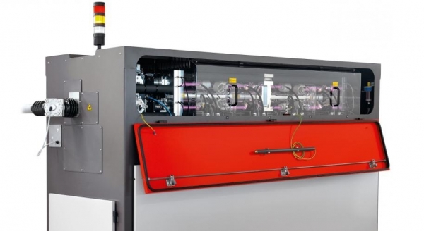 El corte por láser es un procedimiento de división térmico para el tratamiento de chapas. El rayo láser se genera en la fuente láser (resonador) y se guía mediante una fibra transportadora o un espejo al cabezal de corte de la máquina, donde se concentra en un diámetro muy reducido y de mucha potencia con una lente. El rayo láser enfocado entra en contacto con la chapa y hace que esta se funda. Bystronic utiliza dos tipos de fuentes láser: fibra óptica y láser de CO₂.