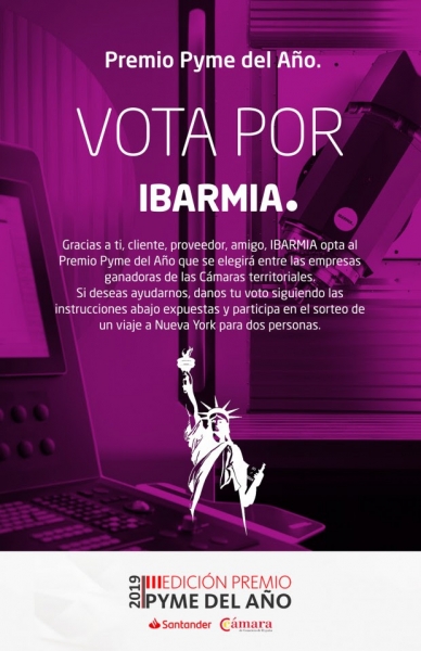 Si quieres dar tu voto a la empresa haz clik en https://online.bancosantander.es/files/premios-pyme/ y en el apartado “Elige ganador provincial” hay un menú desplegable en el que sólo es necesario seleccionar Gipuzkoa para que aparezca la información de IBARMIA. Rellena los datos de la parte inferior de ese formulario para sumar un voto más y mejorar la posición de IBARMIA en el ranking.