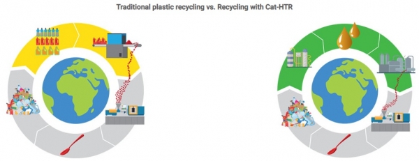 La tecnología patentada Cat-HTR se desarrolló en 2007 y se probó en una planta piloto en Australia durante 10 años. Con la tecnología Cat-HTR, los residuos plásticos que antes eran imposibles de reciclar se pueden volver a convertir en petróleo en 20 minutos; esto es más eficiente en cuanto al uso de recursos que la extracción de combustibles fósiles del suelo. Solo se usa agua, altas temperaturas y presión para separar las células y unirlas de nuevo. Una sola planta puede transformar 20.000 t métricas de plástico al año y reducir la producción de CO2 en 28.180 t métricas. Esto corresponde al consumo anual de 5.983 automóviles o las necesidades energéticas anuales de 4.914 hogares.