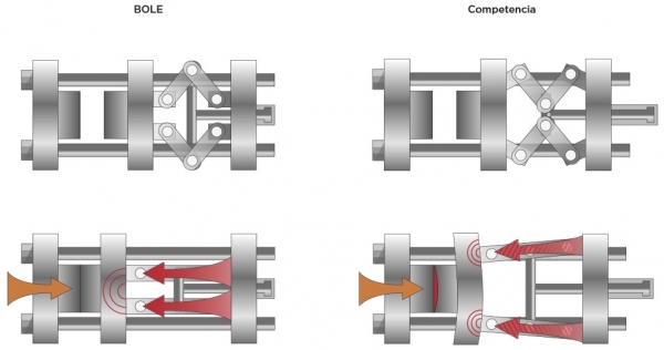Con un consumo mínimo, la Bole BL230FE no requiere de agua para el enfriamiento del aceite hidráulico. El circuito que presenta esta versión híbrida cuenta con una servo-bomba que mueve los dos cilindros simétricos del carro de inyección, los noyos de la máquina y los expulsores.