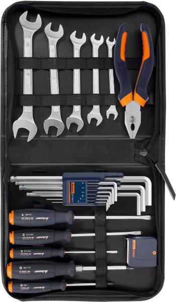 Hoffmann Group presenta el juego de herramientas de 21 piezas en bolsa con cremallera de su marca premium Garant. Incluye un equipamiento básico de muy alta calidad para trabajos de montaje y de reparación, reunido según la experiencia de la práctica. La entrega tiene lugar completamente equipado en una práctica bolsa con cierre de cremallera.