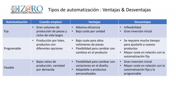 - Alto costo de no automatizar: se obtiene una ventaja competitiva significativa al automatizar una planta de fabricación. Los beneficios de la automatización se muestran de manera intangible e inesperada, como una mejor calidad, mayores ventas, mejores relaciones laborales y una mejor imagen de la empresa. Todos estos factores actúan juntos para hacer que la automatización de la producción sea una alternativa viable y atractiva a los métodos manuales de fabricación.