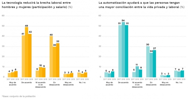 Al tiempo que la confianza en la innovación cae, la idea de que la tecnología aumenta la desigualdad social se consolida, alcanzando en 2019 al 55% de los encuestados.