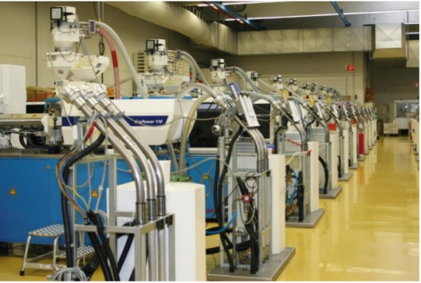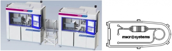 Como ejemplo de aplicación de la máquina MicroPower -una máquina especialmente diseñada para la fabricación de piezas pequeñas y microscópicas y que está predestinada para la industria médica- se encuentra la fabricación del llamado “laboratorio en un chip”. Esta pieza es una aplicación de dos componentes que está fabricada bajo condiciones de sala blanca en un equipo que consiste en dos máquinas MicroPower.