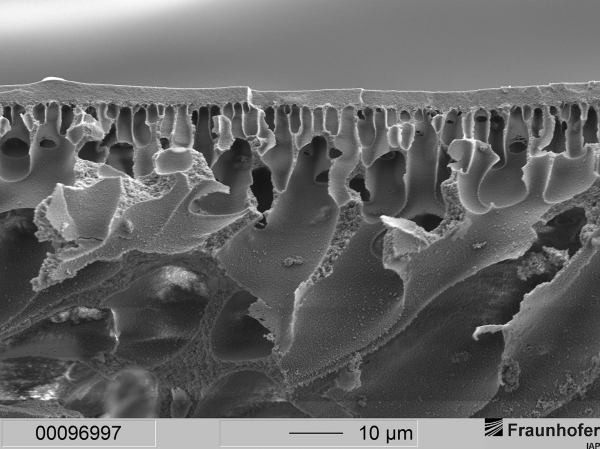 Los investigadores de Fraunhofer IAP en Potsdam (Alemania) se han fijado como objetivo hacer que este proceso sea más apacible para los pacientes. En nombre de la empresa austriaca CCORE Technology, están desarrollando morfologías de membrana capaces de intensificar el soporte de ventilación. Las membranas comerciales tienen una estructura simétrica y están diseñadas para un intercambio lento de oxígeno. “Así que estamos ideando estructuras asimétricas con características que permiten un intercambio de gases mucho más rápido que con las membranas convencionales”, explica Murat Tutuş, investigador de Fraunhofer IAP: “Podemos fabricar una estructura de membrana específica a partir de varios polímeros”.