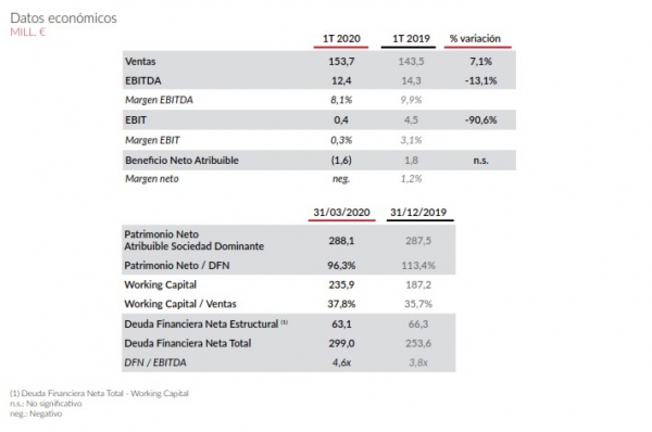 Los resultados de TUBACEX en el primer trimestre de 2020 se han visto afectados por la pandemia mundial del COVID- 19. La cifra de ventas ha ascendido a 153,7 millones de euros, un 7,1% por encima de la cifra de 2019, y el EBITDA ha alcanzado los 12,4 millones de euros con un margen del 8,1% frente al 9,9% del primer trimestre de 2019. Se trata de unas cifras que se encuentran lejos de las perspectivas que tenía TUBACEX para el primer trimestre como consecuencia del impacto del coronavirus en el negocio a nivel global.