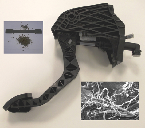 El presente proyecto, de tres años de duración (2012-2014), se centra en aquellos polímeros de origen renovable y biodegradables a los cuales se están incorporando fibras de origen natural. La finalidad del mismo es la de fabricar, a una escala industrial, material biocomposite para su posterior procesado por inyección, de cara a la fabricación de pedales de embrague de un turismo.