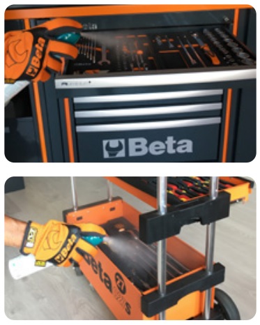 - Detergente/higienizante en seco para herramientas, superficies resistentes, tejidos y estancias.