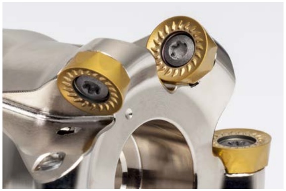 - Placas RCMT en tamaño 10, 12, 16, 20, diseñados para permitir un alto avance por diente, mayor profundidad de corte y mayor vida del filo.