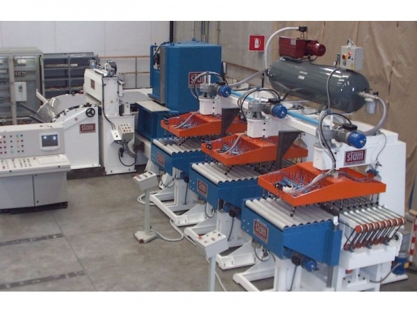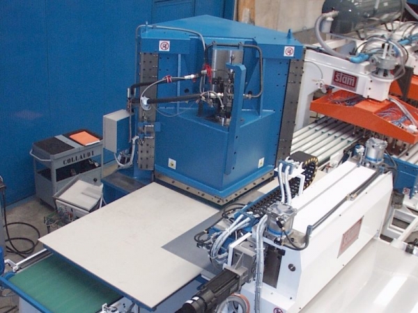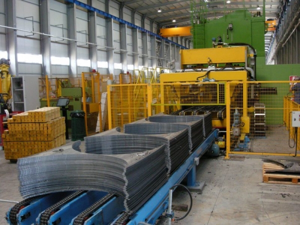 Para las líneas de producción para el corte de discos, Stam utiliza moldes montados en prensas hidráulicas, con movimiento transversal respecto al sentido de marcha y con control numérico.