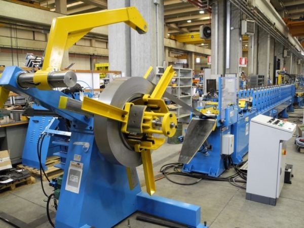 Las líneas de perfilado para reflectores de Stam realizan la producción con soluciones de punzonado/corte antes del perfilado, o corte al vuelo después.