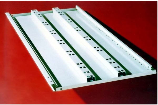 Las estanterías pueden fabricarse a partir de bobinas de acero galvanizado o prepintado. Estos productos generalmente presentan una gran complejidad de realización y deben ser de excelente calidad y de bajo coste unitario. La instalación debe combinar esto con la capacidad de producir altas cantidades (incluso más de 10 piezas/min) y diferentes dimensiones.