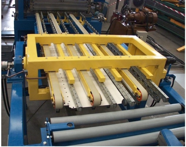 Generalmente, las líneas de perfilado para estantes metálicos se utilizan junto con una línea para la producción de los refuerzos. Estos últimos se posicionan automáticamente debajo de los estantes, en la cantidad requerida en función de la dimensión del estante. Luego, estos elementos se fijan en el estante mediante soldadura o achaflanado.