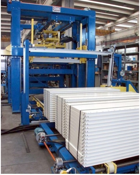 Las líneas de producción para estanterías Stam pueden integrarse con sistemas automáticos de apilamiento y embalaje.