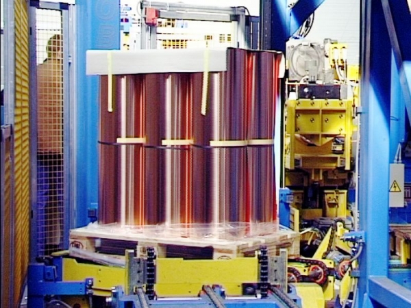 Stam ha desarrollado instalaciones totalmente automáticas para la producción y el embalaje de sub-bobinas, capaces de producir estas bobinas con un ritmo elevado (aproximadamente 1 bobina cada 2 minutos), efectuando el encintado/flejado automático, el embalaje y la colocación en palés, incluyendo el pesaje y el etiquetado.