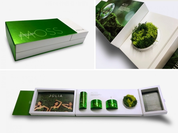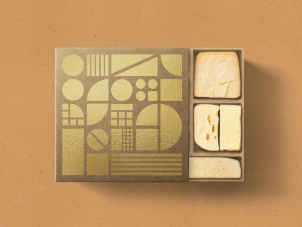 - “Bon Fromage” es una tienda gourmet que buscaba orientar su negocio hacia el comercio electrónico y mejorar el packaging de su producto estrella: las selecciones de quesos para compartir. La solución mezcla materiales naturales y austeros, como el cartón kraft, con acabados lujosos, como el stamping. El diseño gráfico se inspira en las diferentes formas que tienen las distintas variedades de queso.
