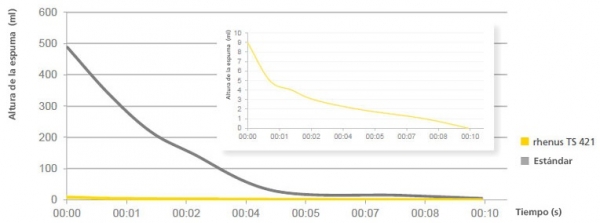 El rhenus TS 421 de Rhenus Lub es uno de los productos con menor formación de espuma del mercado. Desarrollado para los procesos de mecanizado y rectificado más habituales, el lubricante refrigerante miscible en agua apenas genera espuma, ni siquiera a altas presiones, lo que incrementa el efecto de lubricación y refrigeración. “Se trata de un factor de éxito clave para los usuarios. La baja tendencia a formar espuma y la buena detergencia del rhenus TS 421 repercuten directamente en los costes de los procesos. Además, como prácticamente limitamos la espuma a cero, la dureza del agua de mezcla apenas tiene importancia. Es algo que favorece a empresas fabricantes que, incluso utilizando agua blanda, ahora cuentan con condiciones óptimas para una fabricación exenta de espuma”, asegura Daniele Kleinmann, directora de gestión de productos de lubricantes refrigerantes de Rhenus Lub.