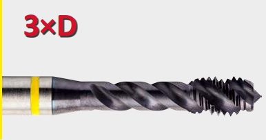 - Geometría del canal: El ángulo del canal en espiral de 48° facilita una evacuación de la viruta suave y rápida, lo que resulta adecuado para roscar agujeros ciegos profundos (tres veces el diámetro). El aumento del desahogo de la rosca permite, asimismo, utilizar velocidades de corte más rápidas en aceros de alta resistencia.
