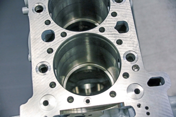 En 2011, se puso en servicio una primera línea para mecanizar estos bloques de motor. Al planificar una segunda línea, los responsables aprovecharon su experiencia con la primera línea. Identificaron el mecanizado de los agujeros para los adaptadores de cilindro como un reto particularmente desafiante. El mecanizado se dividió en dos estaciones: una para pre-mecanizado y otra para mecanizado fino.