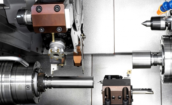 - A pesar de tener dos torres, el movimiento del subcabezal permite mecanizar con tres herramientas simultáneamente.