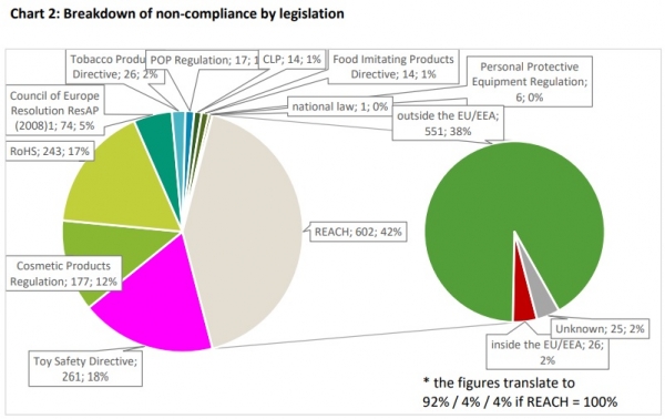 El 92% de los productos que no cumplen con REACH en productos de consumo proceden de fuera de la UE / Espacio Económico Europeo (EEE). Este es el descubrimiento clave del análisis Cefic de los datos reportados a través del sistema de alerta rápida (Rapex) de la UE Safety Gate. El hallazgo confirma la necesidad urgente de que los estados miembros de la UE intensifiquen la aplicación de REACH en los bienes importados.