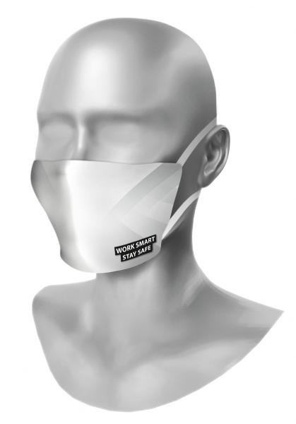 Se puede personalizar la máscara en diseño propio mediante impresión de sublimación completa en toda la superficie o el logotipo de la empresa.