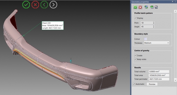 El análisis del CAD se beneficia de una nueva función que mejora el conjunto de modos de sombreado de análisis. Se ha añadido “Análisis de ángulo de salida” al sombreado de negativos y accesibilidad existentes, realizando un análisis on-the-fly del ángulo de salida. Esto utiliza la misma técnica que en el modo de negativos, pero se extiende a más rangos. Los colores y el valor angular de cada gama se pueden cambiar simplemente haciendo clic en los colores o etiquetas numéricas en la barra de herramientas gráficas.