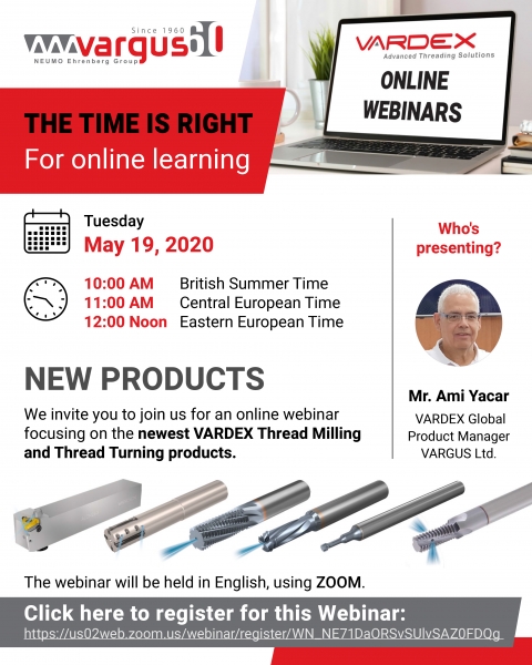 El tema de este seminario es: “Nuevos productos Vardex: las últimas innovaciones en productos de fresado-roscado y torneado de roscas”.