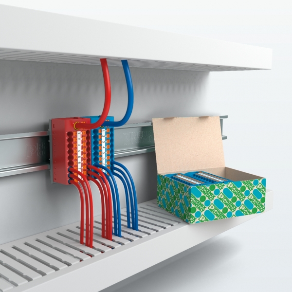 Los bloques de distribución PTFIX con tecnología Push-in, que se pueden usar de inmediato, ayudan a garantizar la distribución de corriente de alimentación y control de manera flexible y económica, ahorrando espacio y tiempo en la distribución de potencial.